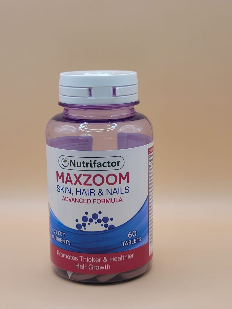Support your skin, hair, and nail health with Nutrifactor MAXZOOM SKIN, HAIR & NAILS Advanced Formula Tablets, the ultimate solution for a natural, radiant beauty boost.