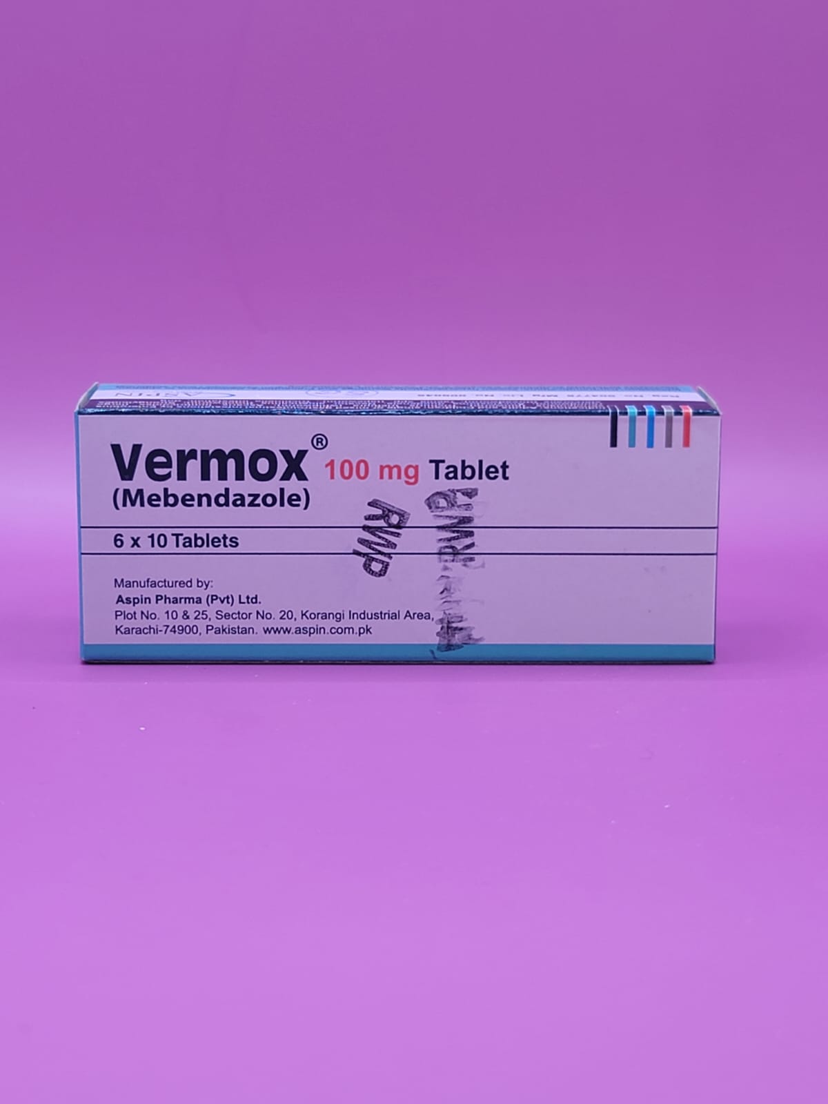 Vermox contains Mebendazole (100mg), an anti-parasitic medication used to treat various intestinal worm infections, such as roundworms, hookworms, whipworms, pinworms, and tapeworms. Mebendazole works by inhibiting the ability of worms to absorb glucose, which deprives them of essential energy, leading to their death. It is commonly prescribed for intestinal helminthic infections in both adults and children.